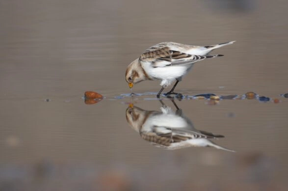 De sneeuwgors is wat je noemt een innemende wintergast. Het is echt een ‘poepie’…