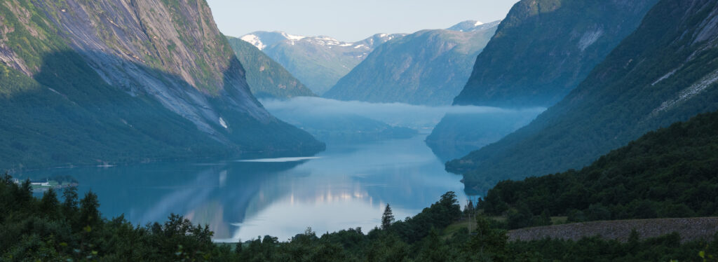 Vroeg ochtendlicht en nevel zorgen voor extra sfeer.