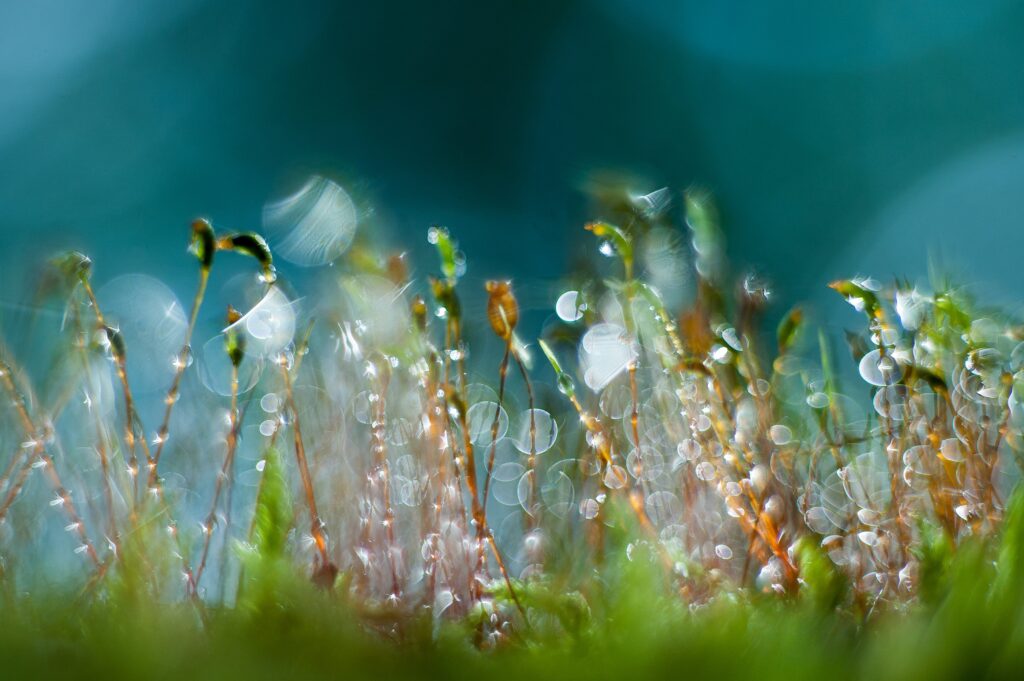 Van het mos is bijna niets scherp in deze foto, maar de vele lichtvlekken zijn dat wel. Dat maakt deze foto heel bijzonder. Hier heeft de fotograaf veel tijd in gestoken, met een verrassend resultaat.