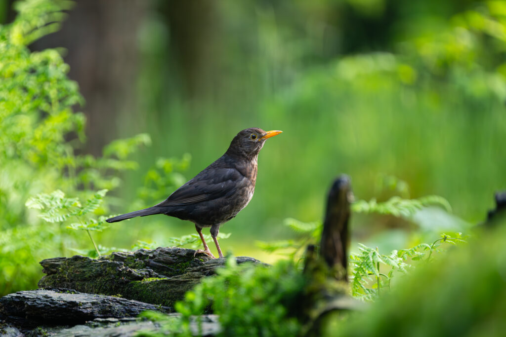 Elbert Jan Achterberg – Een merel zoekt naar eten tussen de varens op de bodem van het bos