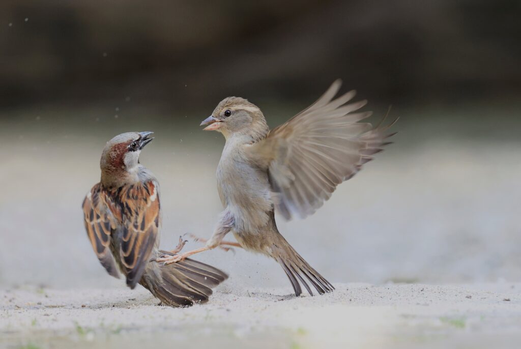 Peter Verwoerd – Mussen nemen vaak een stofbad om hun verenkleed te onderhouden, onderling kunnen ze flink ruzie maken