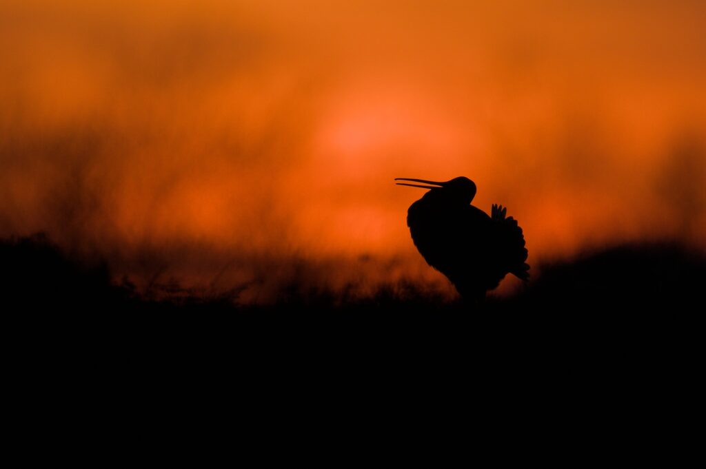 Een magistrale foto. Het lage licht schijnt fraai door de staartveren en zorgt voor een lichtcontour van de hele vogel. Ook zijn er veel details te zien, zoals de poten die voor de staartveren hangen.