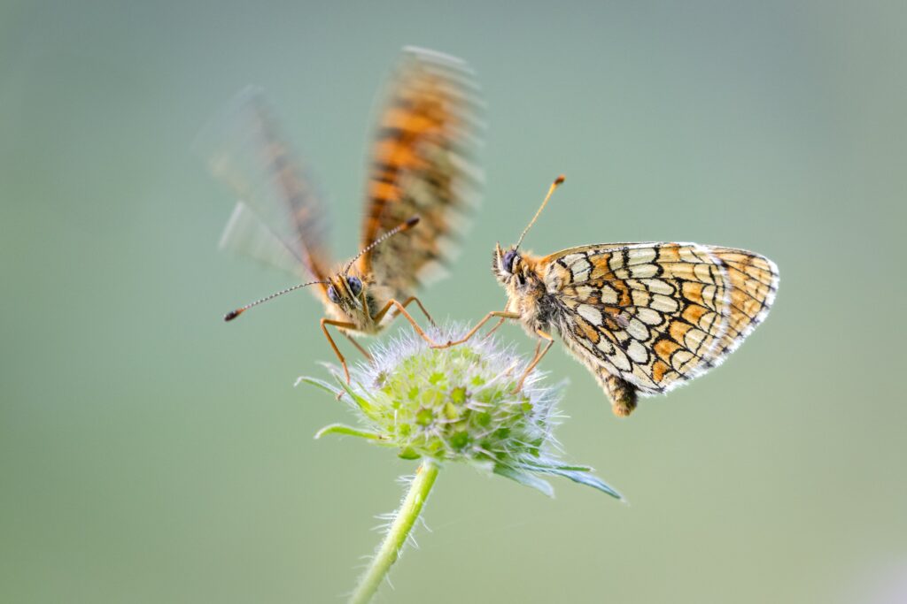 Twee vlinders op een bloem, dat klinkt een beetje saai. Maar als je zo goed het contrast weet vast te leggen tussen de bewegende vleugels en het haarscherpe exemplaar op de voorgrond, wordt het ineens een heel spannende plaat.