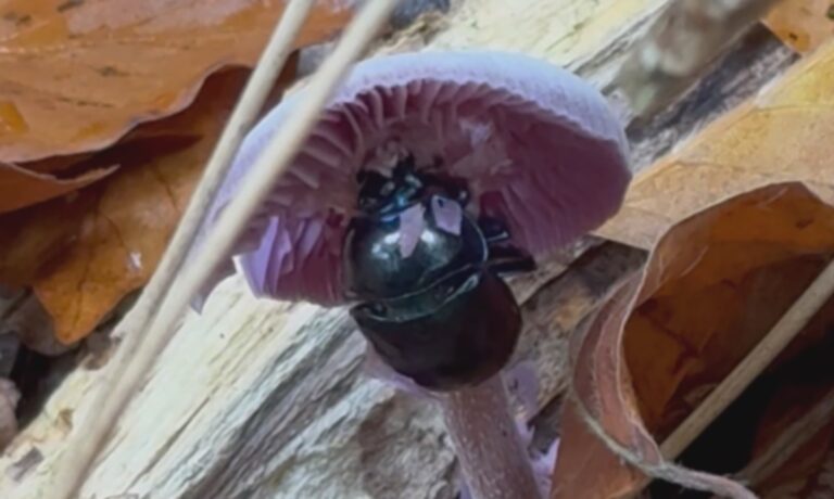 Greet Pollaris zag tijdens een wandeling ineens een paddenstoel bewegen. “Het was geen kabouter maar deze leuke kever.”