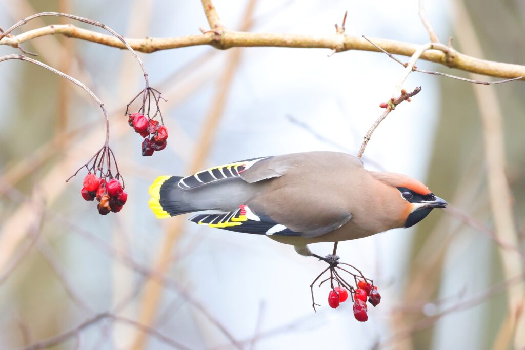 De pestvogel is een opvallende verschijning. Vooral zijn volle kuif, de knalrode vleugelstreepjes en de fel gele aftekening van staart en vleugels. Ook het zwarte oogmasker en het roze-bruine verenkleed springen in het oog. Maar deze vogel heeft wel een voorkeur voor de hoogste takken van bomen en dus zul je er snel overheen kijken.