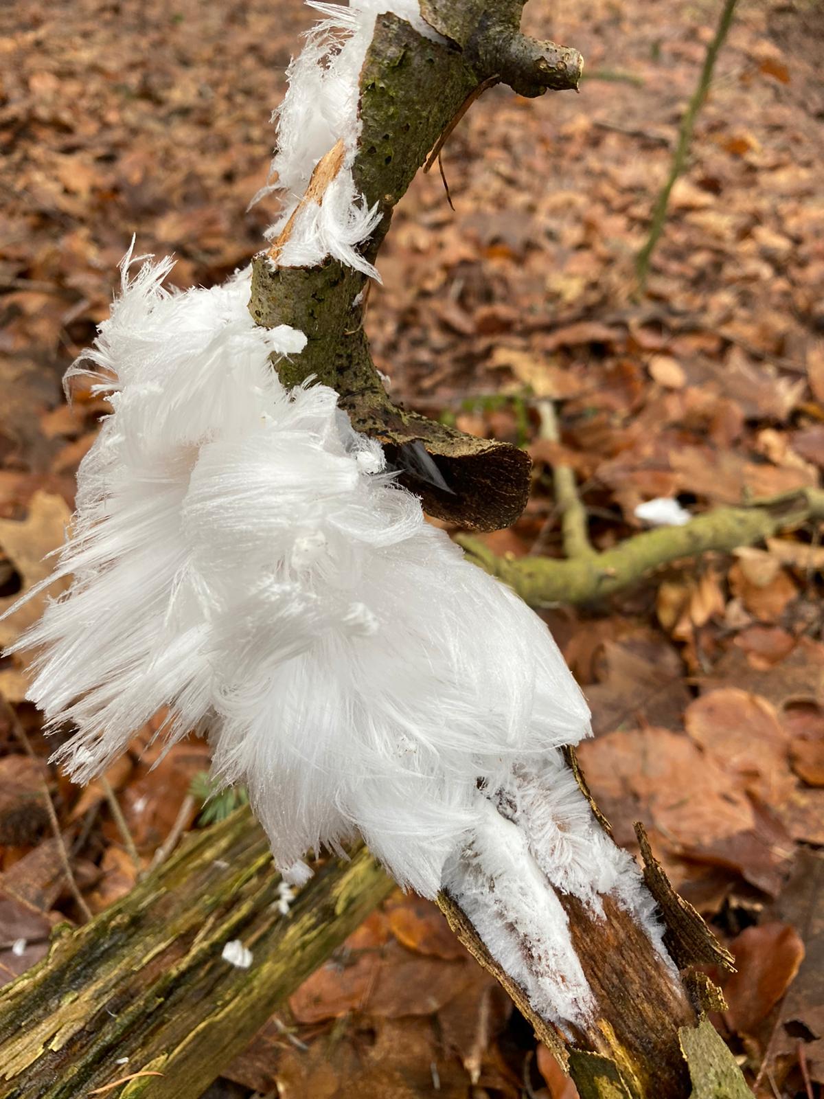Er is kans op ijshaar ! Als er na een natte periode een beetje nachtvorst is, neemt de kans op ijshaar sterk toe. Een bijzonder fenomeen dat je minstens één keer gezien moet hebben! Deze week is er lichte vorst, dus met een beetje geluk kun je dan ijshaar vinden in gemengde of loofbossen waar de luchtvochtigheid hoog is.