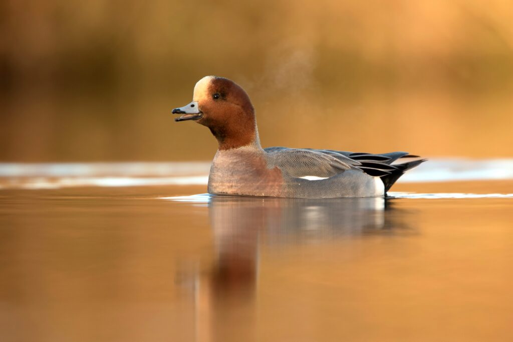 De smient wordt vanwege zijn kenmerkende roep ook wel ‘fluit’eend genoemd. Op een herfst- of winteravond is hun grappige fluitende roep te horen als ze over vliegen: op weg naar het zuiden of op weg naar de rijke graslanden rondom woonwijken, om hun buikjes vol te eten. En dat klinkt als fluitende badeendjes, het geluid dat je hoort als je in zo’n geel badeendje knijpt.