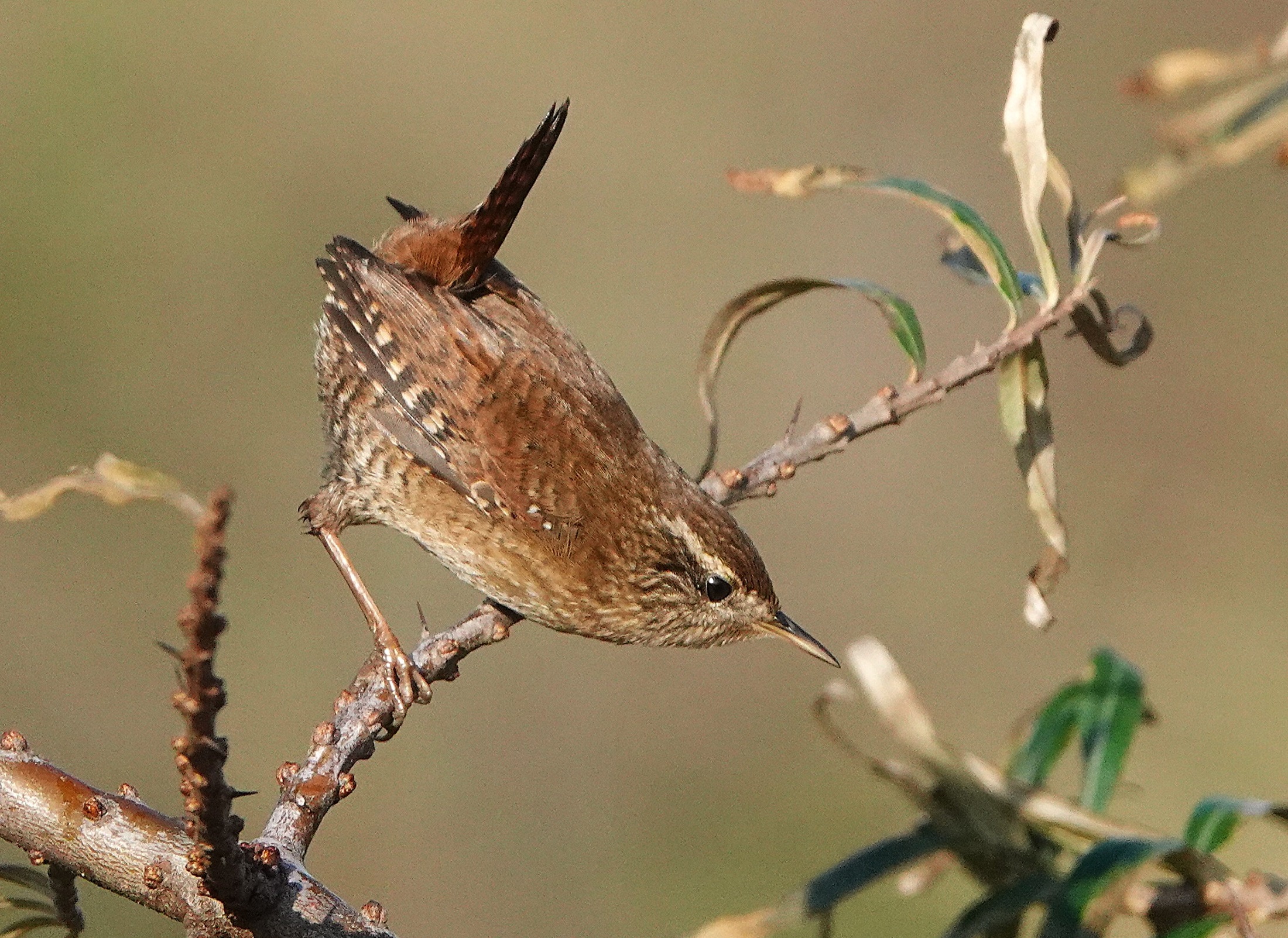 Kenmerken: klein, bruin, gestreept vogeltje met een opstaand staartje, een spitse snavel en een lichte wenkbrauwstreep.