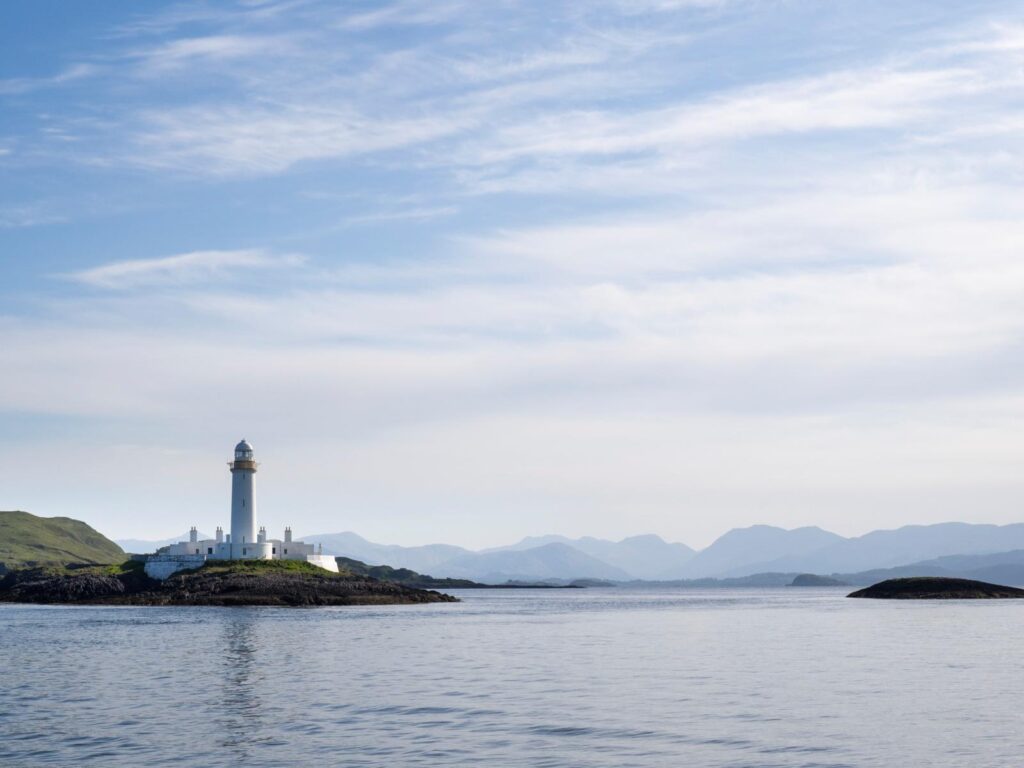 de uitgestrekte archipel voor de westkust van Schotland. Ik behoor tot de acht geluksvogels uit een gezelschap van Nederlanders, Zwitsers en Amerikanen die in een zonnige voorjaarsweek mee mogen, van eiland naar eiland. Wildlife gegarandeerd, werd ons de avond voor vertrek beloofd. De belofte wordt de volgende ochtend al voor een deel ingelost. Binnen anderhalf uur na vertrek uit het havenstadje Oban zien we een zeehond, twee dolfijnen en een bruinvis. Een bruinvisvin dan, meer laten deze dieren boven het wateroppervlak niet van zich zien. We zeilen langs kliffen, witte vuurtorens en Duart Castle op het eiland Mull, al sinds de 13e eeuw eigendom van de Maclean-clan. Hoeveel Schotser wil je het hebben?